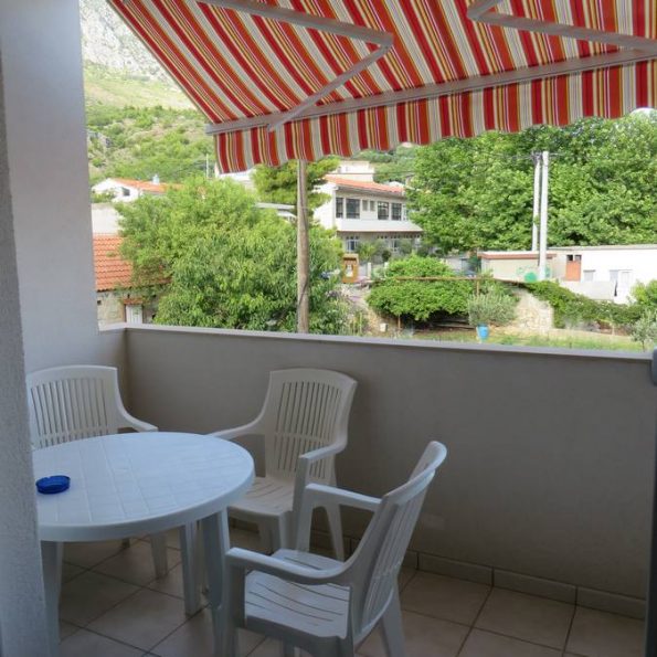 - Balcony with table, chairs and awning